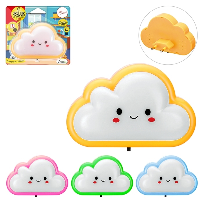Mini Luminária Luz Led Infantil Nuvem Abajur de Tomada Led Infantil Colorida Quarto Bebê Noturna
