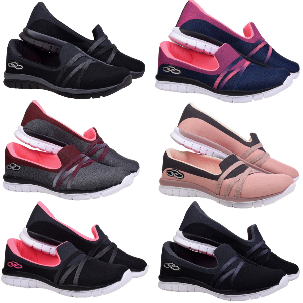 Tênis Feminino Slip On calçe facil Sem Cadarço Sapatilha Casual Leve Confortável kit Promoção