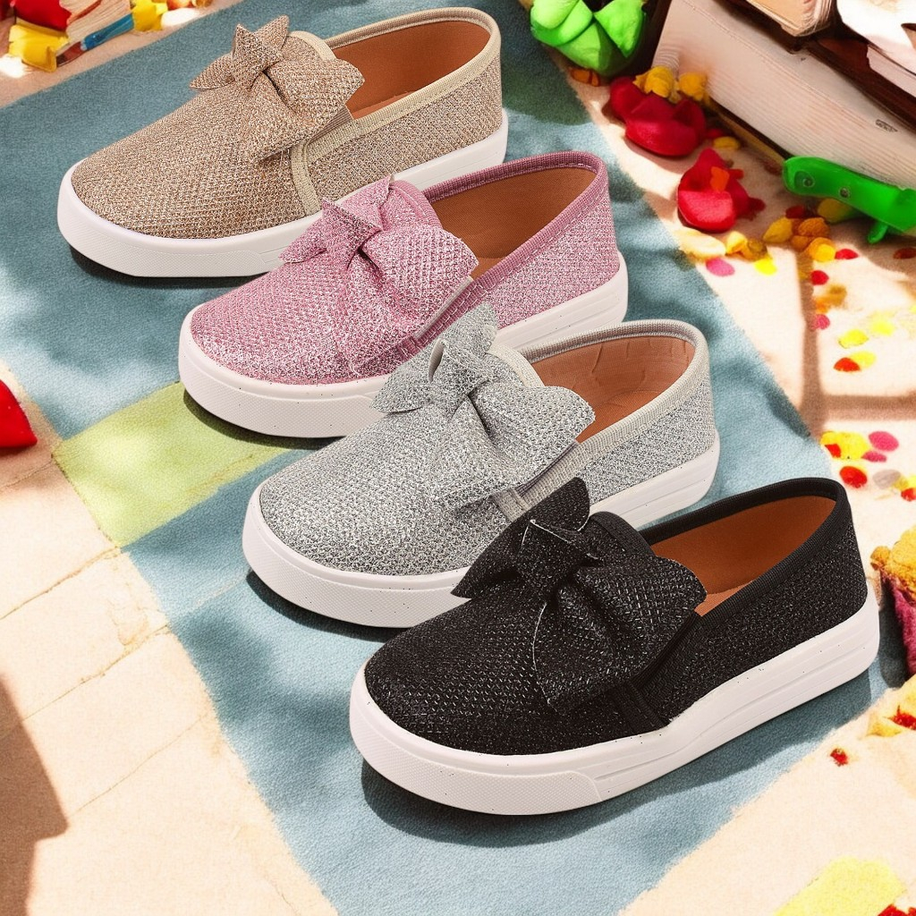 Tênis Infantil Slip On Menina Sandália Feminino Glitter Sapatilha Infantil Laço Sapatênis Com Brilho