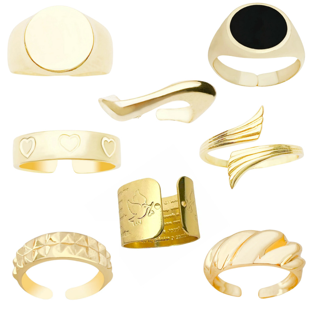 kit 8 dedeiras ( anel ) lisas banhado a ouro 18k variadas