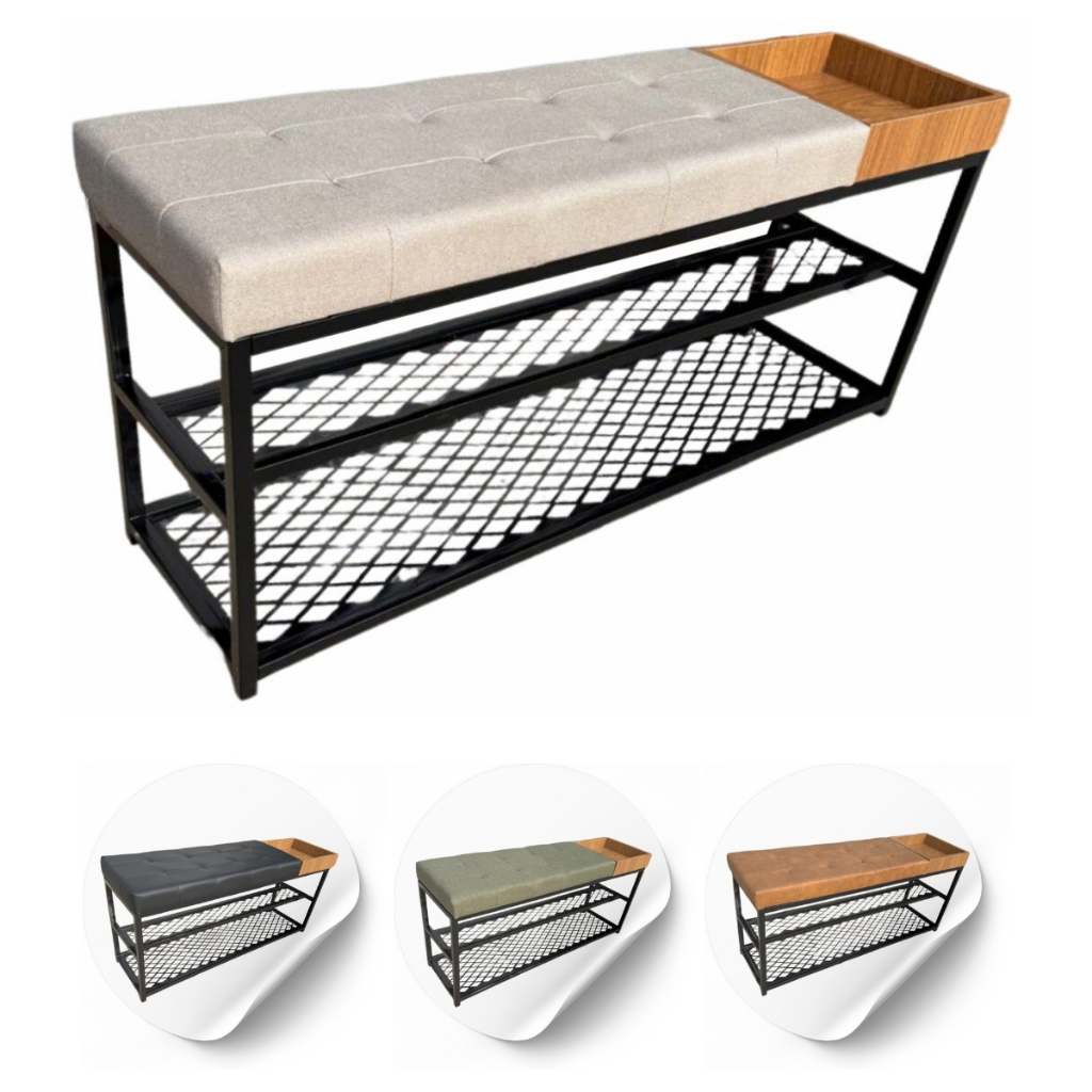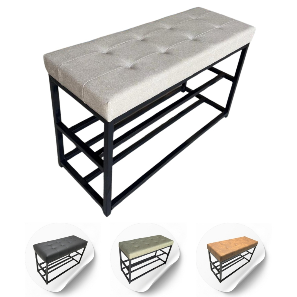 Banco Sapateira Organizadora 2 Prateleiras Moderna Metal Com Assento Estofado Macio