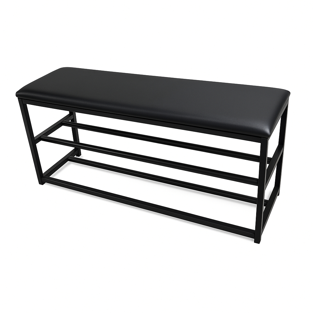 Banco Sapateira 1,10cm Estilo Industrial Metal Reforçado Sapatos Organizados Estofado Macio Preto