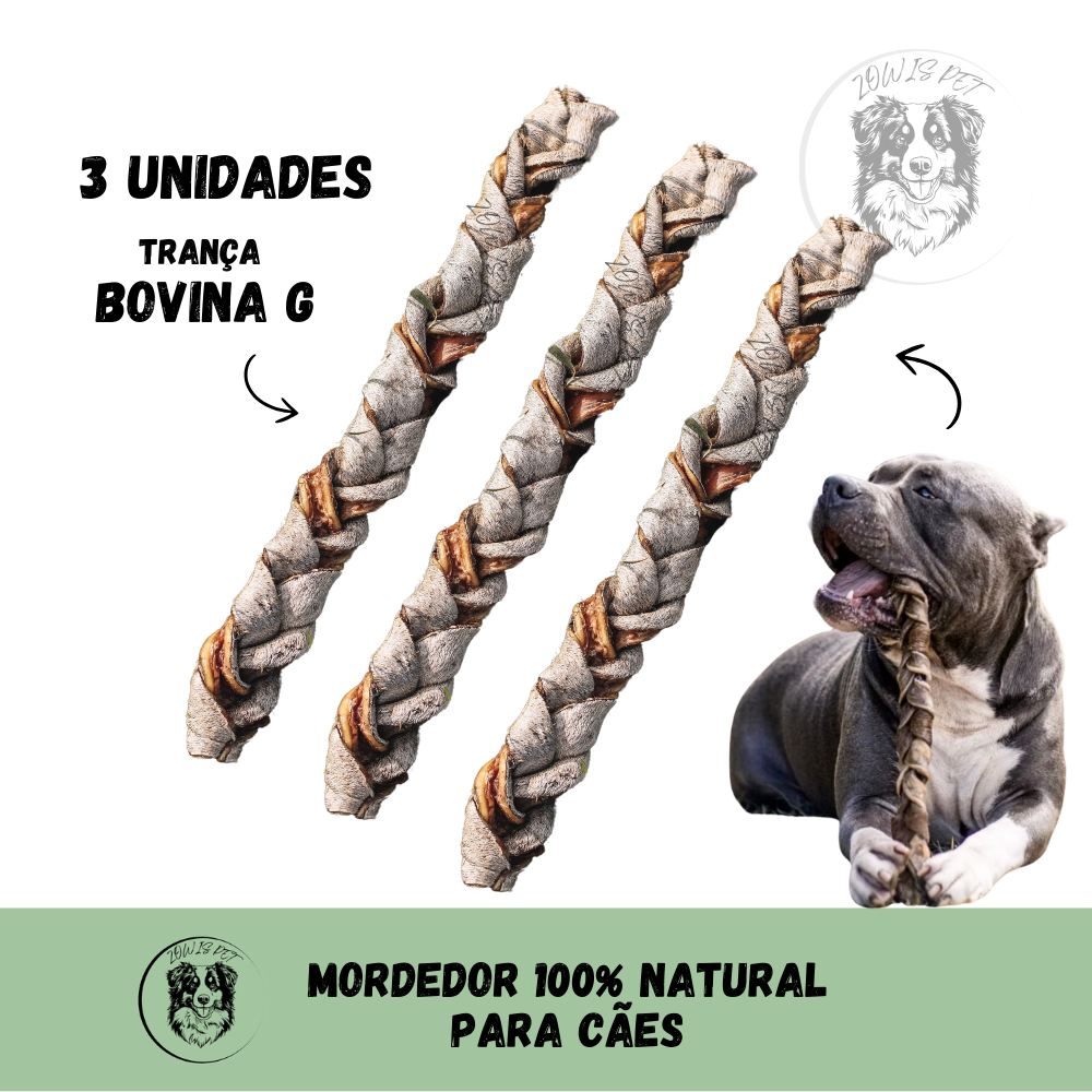 Kit 3 Trança de Couro Bovino para Cachorro Natuka - Mordedor Natural Desidratado Pet P M G