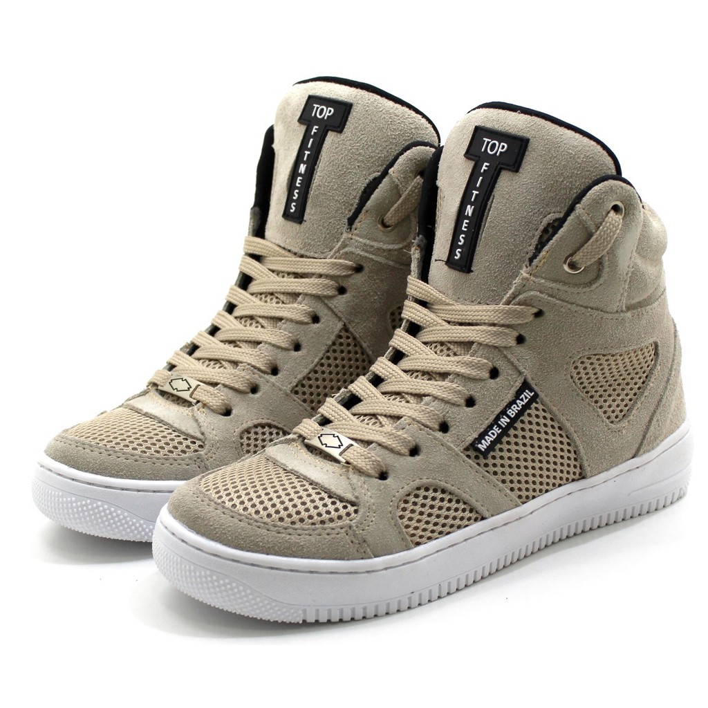 Tênis Botinha Sneaker Cano Alto Moda Top Fitness Bege