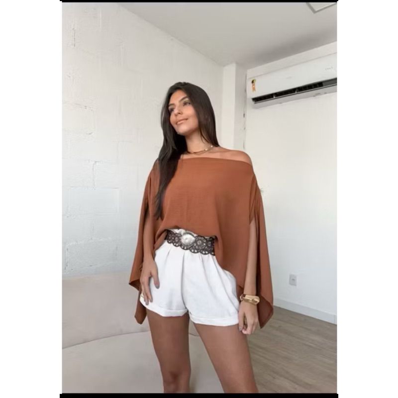 Blusa feminina xena manga morcego capa decote de ombro caído crepe duna elegante