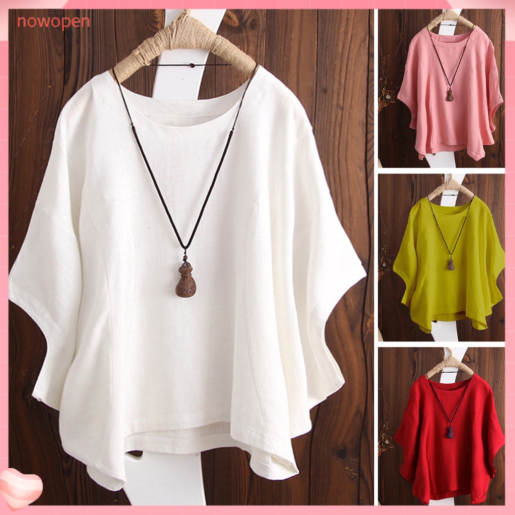 [NP] Blusa Feminina De Manga De Asa De Morcego O-Neck Loose Fit Women Cor Sólida Pullover Top Vestuário Feminino