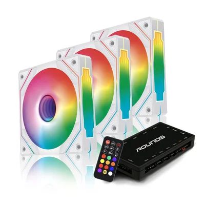 Kit 3 Fan 120mm Round5 Aurora Forward Com Controladora ARGB Branco R5-kit-aurora-fw-w-2218