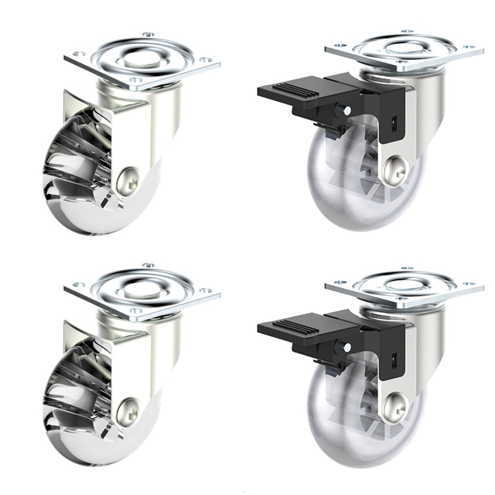 Kit 4 Rodizio Giratório Gel Rodinha Silicone 2 Com Trava 2 Sem Trava - 35mm 50mm