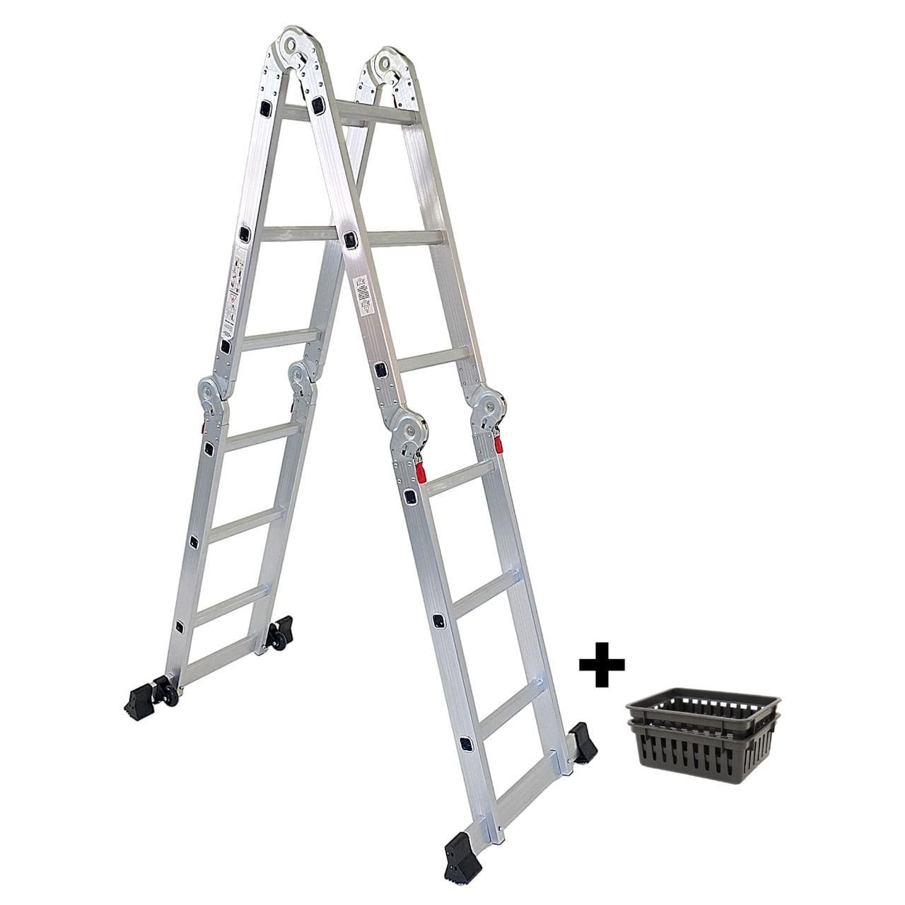 Escada Articulada De Alumínio 12 Degraus 3,32 Metros De Altura + 4 Mini Cestos Organizadores