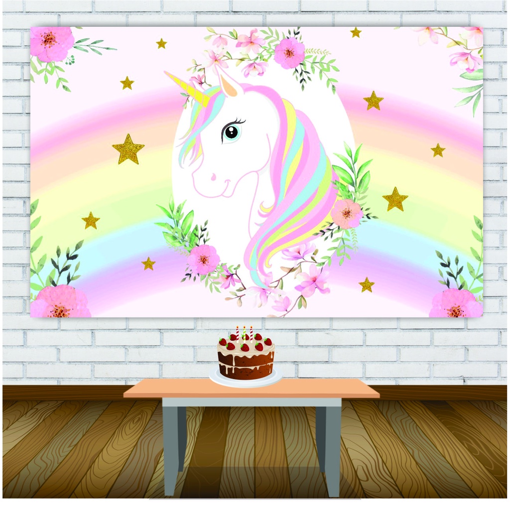 Painel De Festa Infantil Unicórnio Moderno Floral e Lindo P_ 104