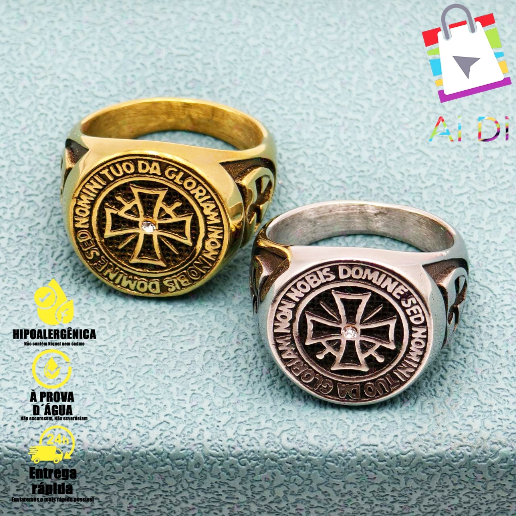 Anel Medieval de Aço Inoxidável com Cruz dos Cavaleiros Templários - Design Clássico e Religioso