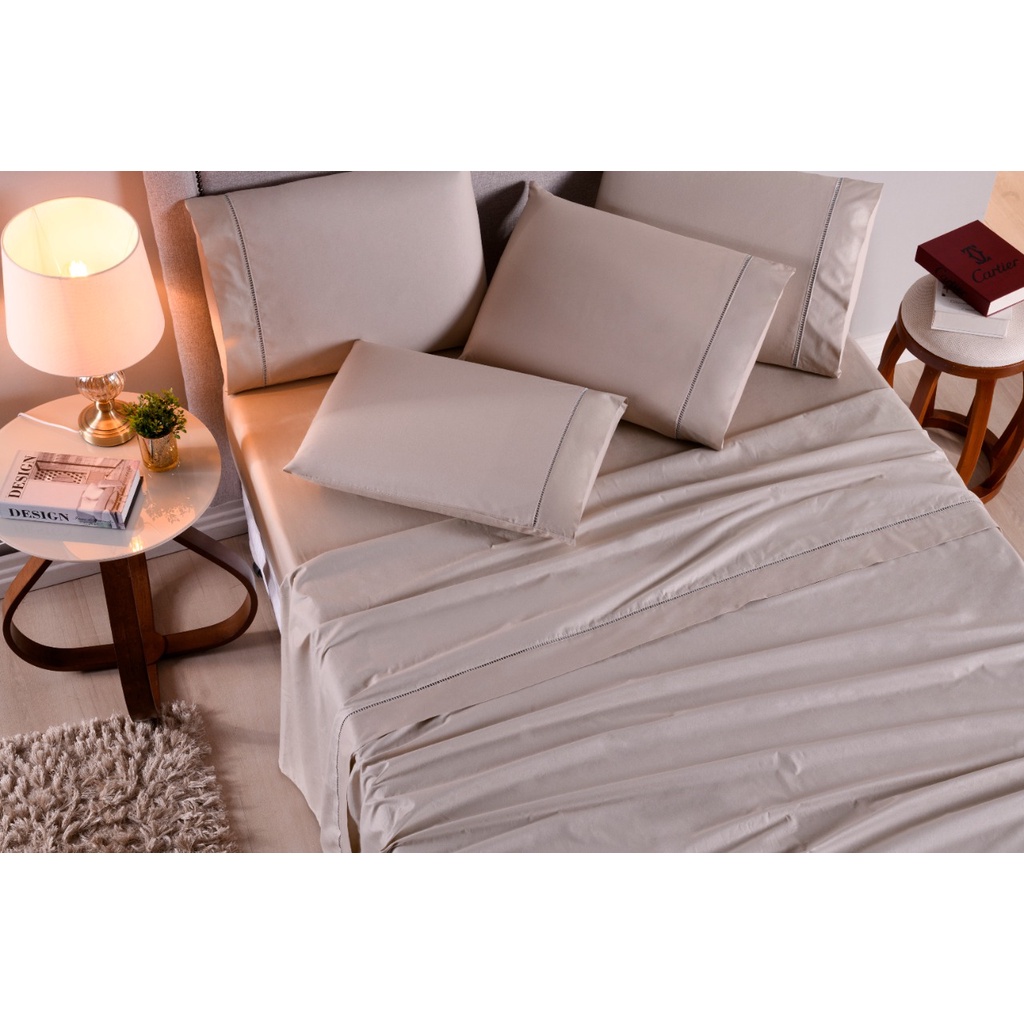 Jogo Lençol Queen 4 Peças 100% Algodão 400 Fios Bege