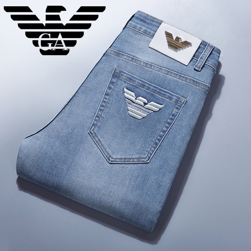 2022 Calça Jeans Masculina De Outono E Inverno Grosso Elástico Cintura Azul Clara Tubo Reto Solto Grande Roupas Masculinas