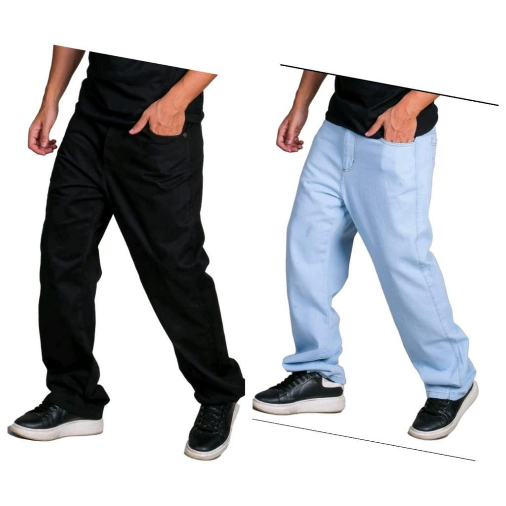KIT 2 Calça Jeans Masculina Balão Bag Baggy Larga Estilo Skatista Clara Escura Preto Grossa Premium