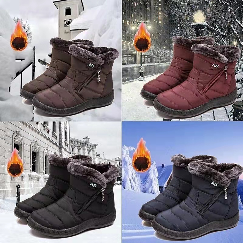 Bota De Inverno Forrada De Pelúcia Feminina Com Zíper Lateral/Impermeável/Botas De Neve 35-43