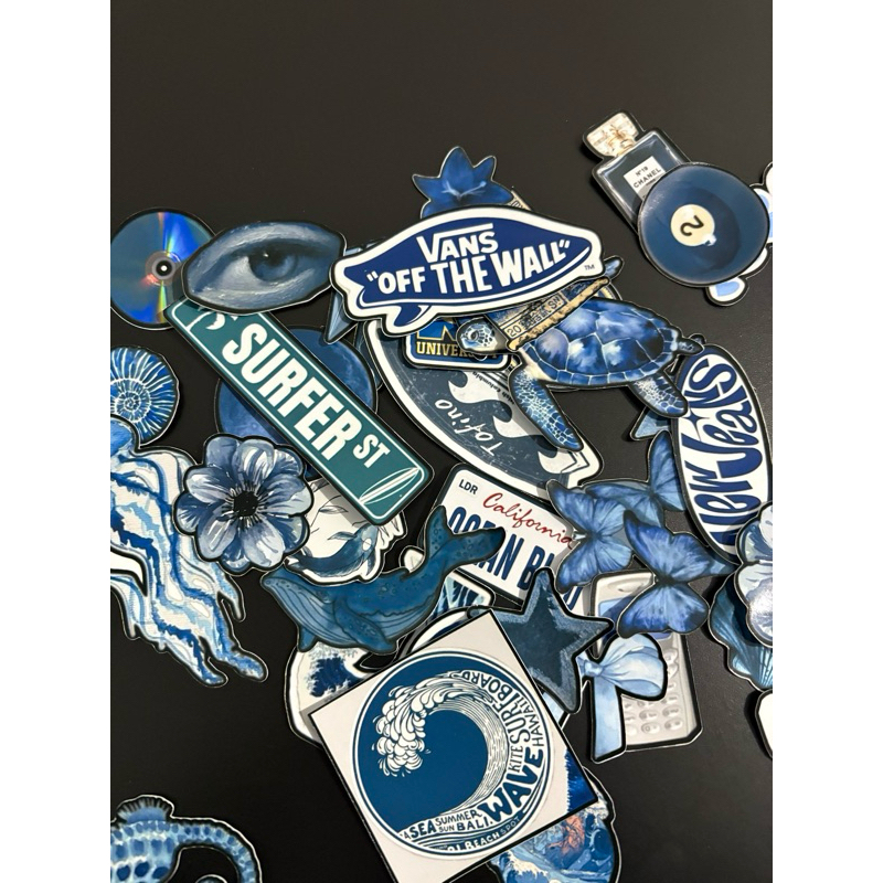 Conjunto de 38 Figurinhas Blue Asthetic Resistentes à Água para Colagem e Decoração Garrafinha/Caderno/