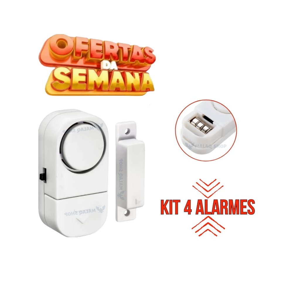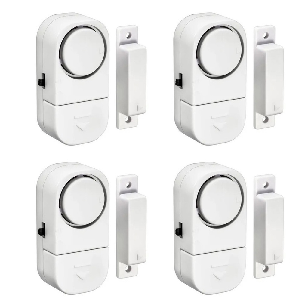 Kit 04 Alarme Sonoro Invasão Residencial Porta Janela Portão