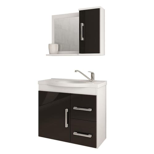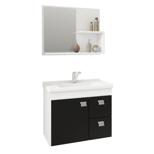 Armário Gabinete Vix 65cm para Banheiro com Cuba e Espelheira - MGM - Preto