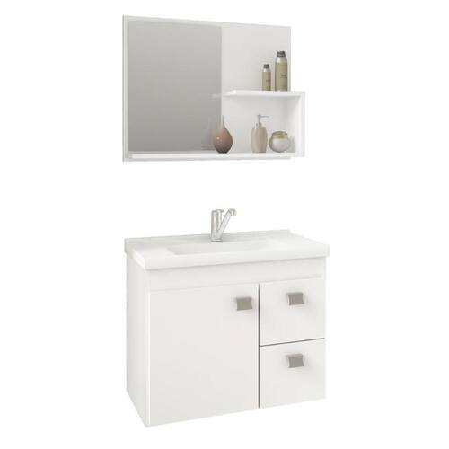 Armário Gabinete Hortência 55cm para Banheiro com Cuba e Espelheira - MGM - Branco