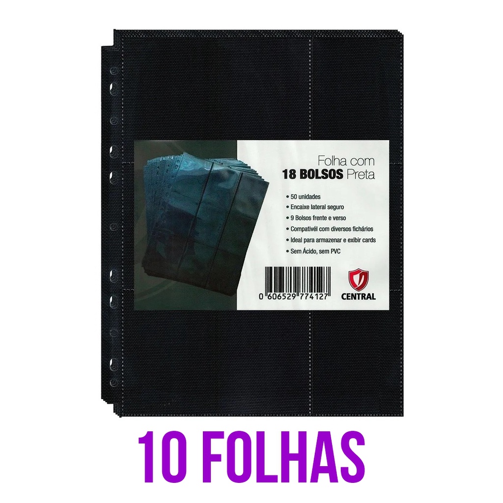 10 Folhas Para Fichário Central Com 18 Bolsos Preta Pokemon Magic