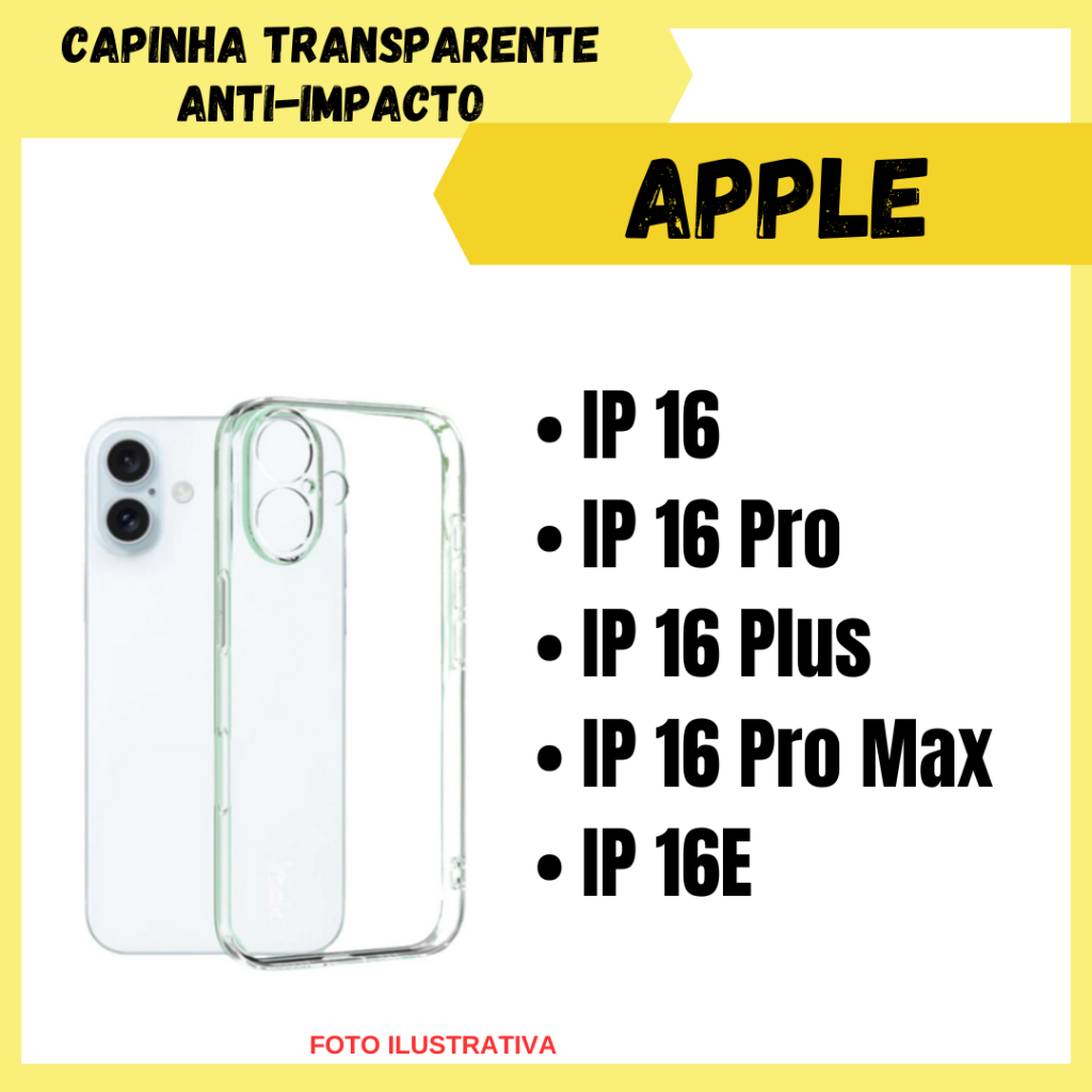 Capa Transparente Borda Anti Impacto Para Apple Iphone 16 / 16 Pro / 16 Plus / 16 Pro Max / 16E / Capinha Simples (CF09)