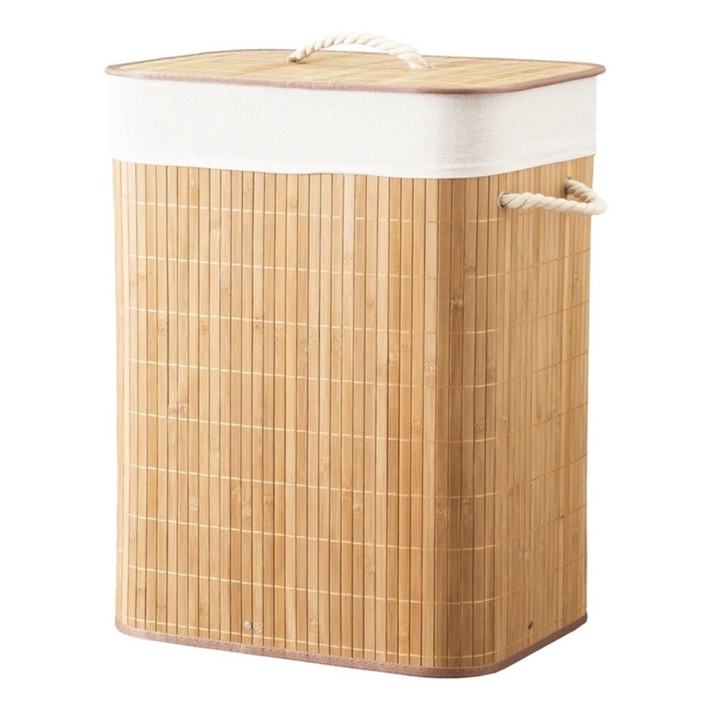 Cesto Roupa Suja 60 L Bambu Bambu Retangular Forrado Lavanderia Brinquedo Quarto Banheiro Dobrável Preço Baixo