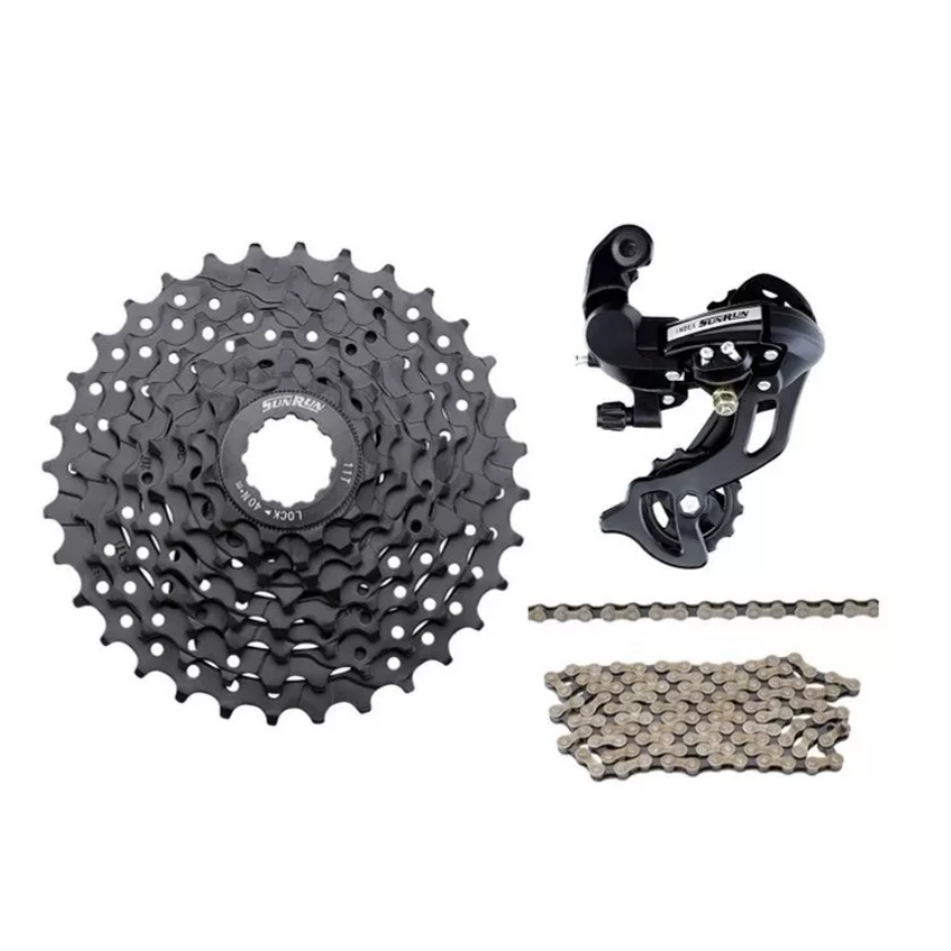 Kit 24v Catraca K7 K8 8v Sunrun 11/32 Index Com Corrente Fina Ciclismo Mtb ou Speed Padrão Shimano