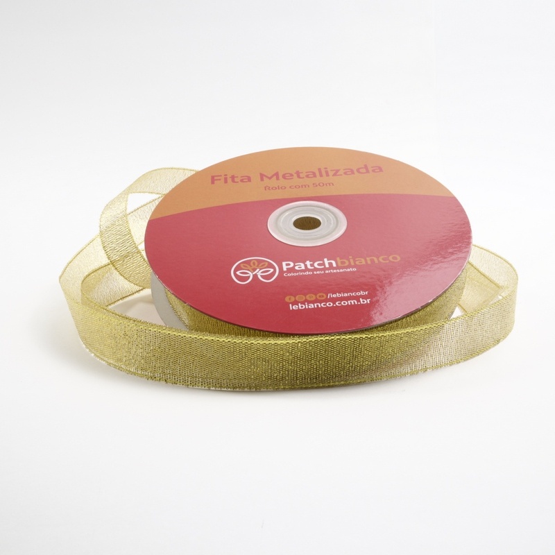 Fita Metalizada Dourada - 20mm - Rolo Com 50 Metros