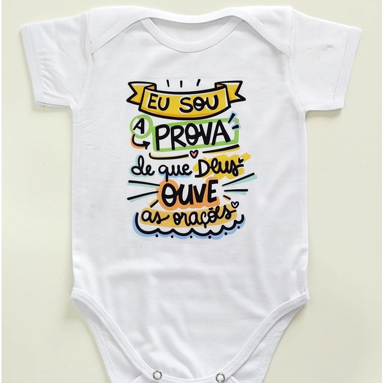 Body Bebê com Frases: Eu Sou A Prova De Que Deus Ouve As Orações