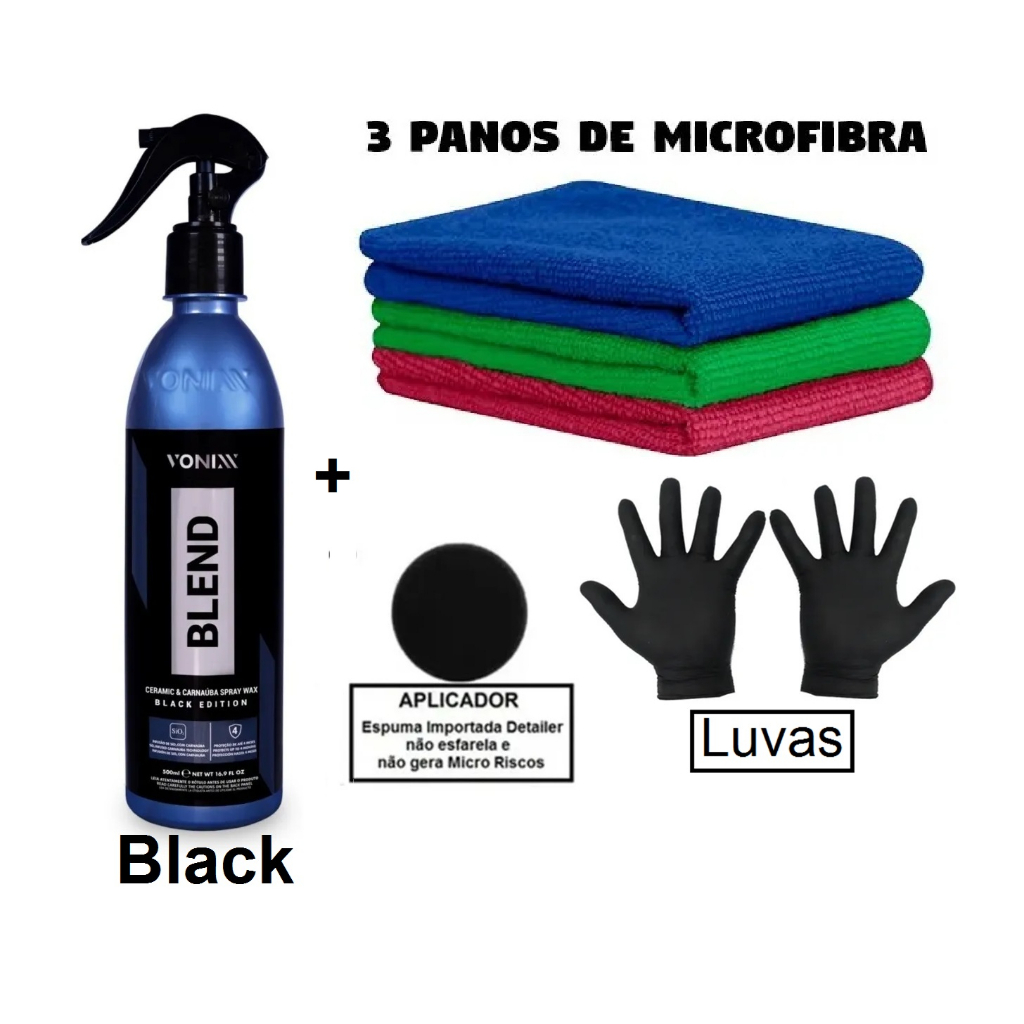 Blend Black Carnaúba Sílica Spray Wax 500ml Vonixx+ Panos+ Aplicador e Luvas