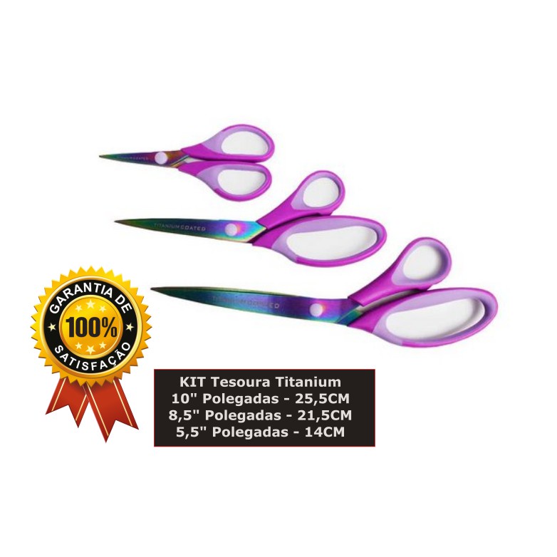 Kit 3 Tesouras Titanium PROFISSIONAL - Não Perde o Corte