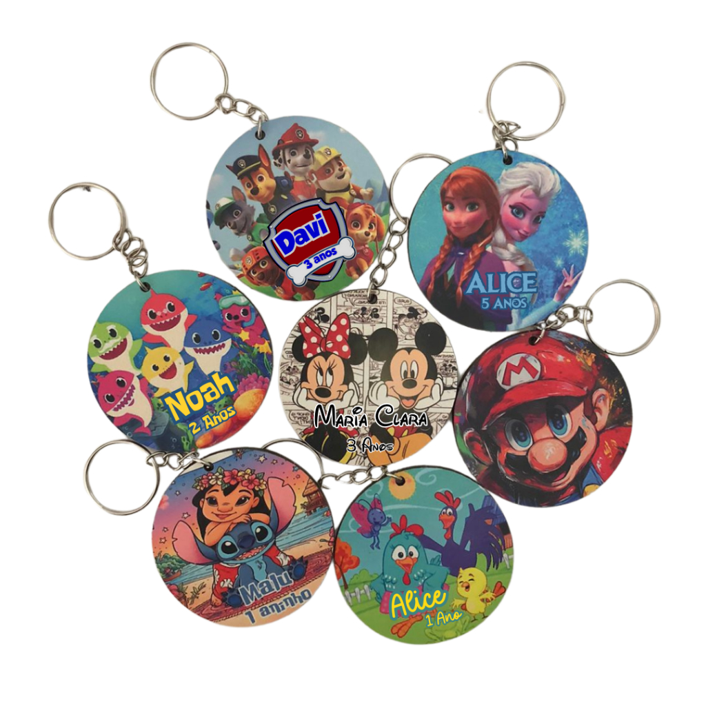 Kit Chaveiros Personalizados MDF Resinado p/ Lembrancinhas Aniversário, Chá de Bebê, Maternidade Temas Diversos