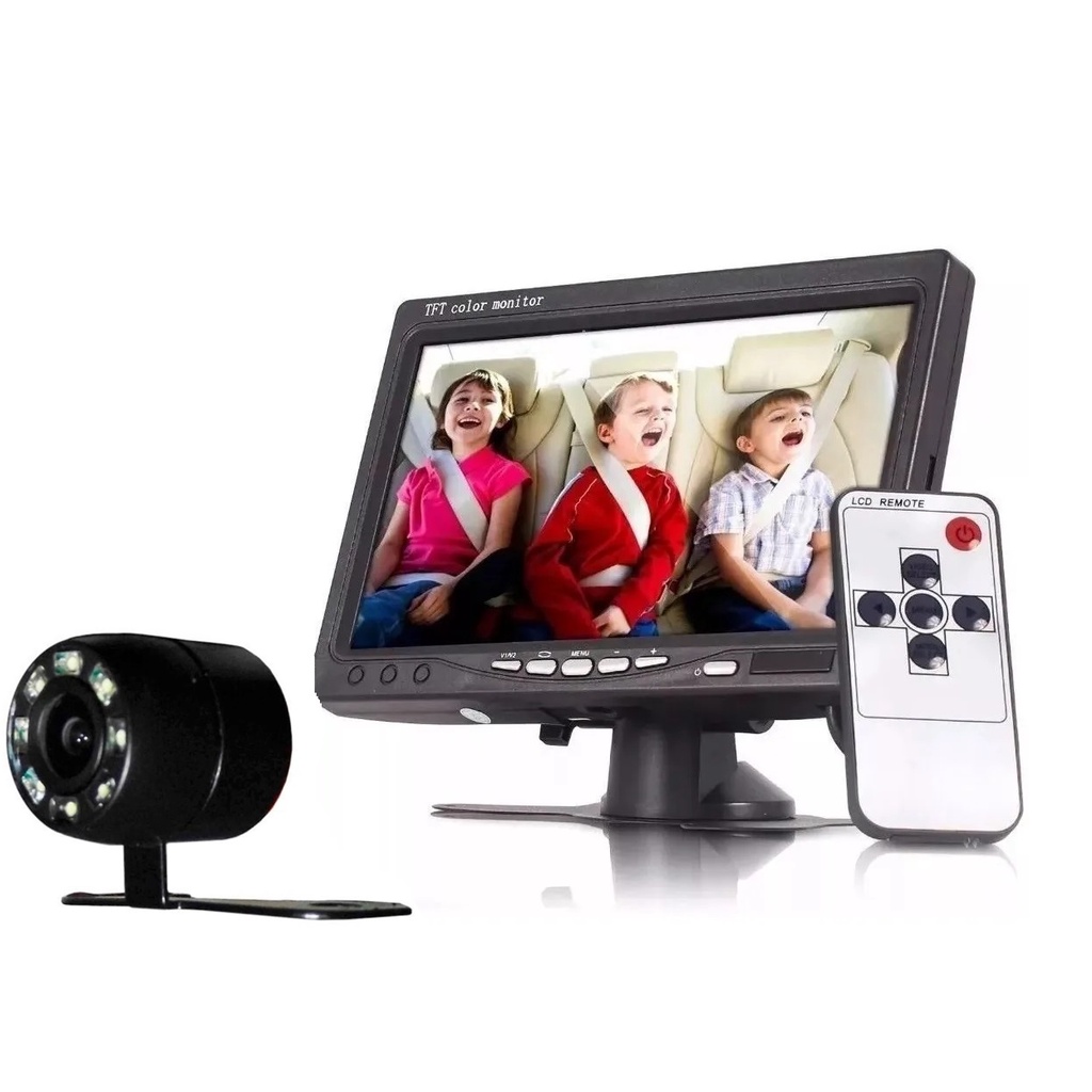 Kit Monitor Tela 7 Pol + Câmera Der Ré Led Noturna Universal