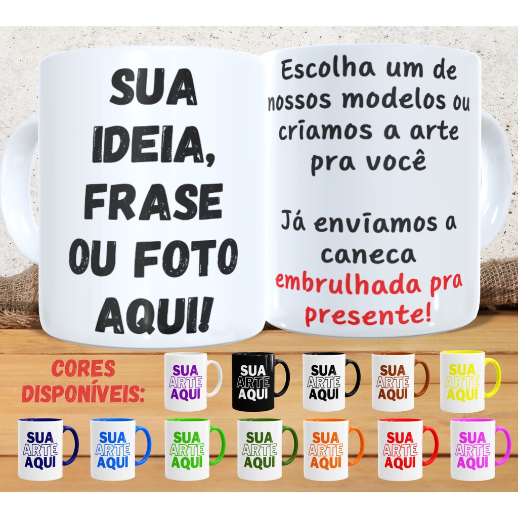 Caneca personalizada vários temas porcelana já embrulhada pra presente 325 ml sua ideia logo foto ou criamos pra vc