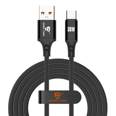 Cabo Somic Tone Tipo C Turbo 30w 1 Metro Reforçado Em Cobre E Carregamento Rápido