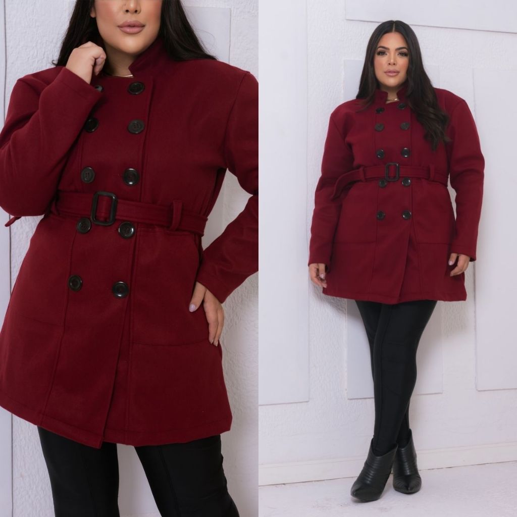 Casaco Lã Batida Sobretudo Feminino Plus Size G2 G3 G4 Inverno Elegante Confortável Com Ajuste