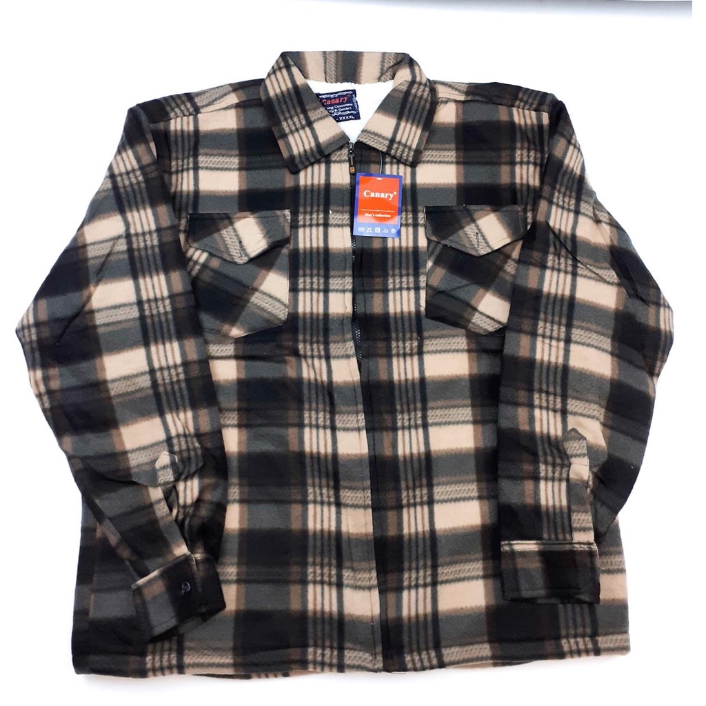 Jaqueta De Lã Xadrez Masculina Forrada De Sherpa Com Zíper Outono Inverno
