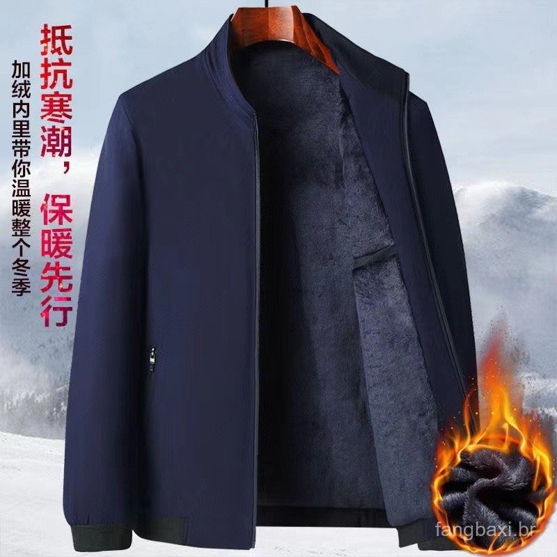 Pai jaqueta de inverno forro de lã engrossado jaqueta de idosos de meia-idade masculina quente outono inverno vovô roupa