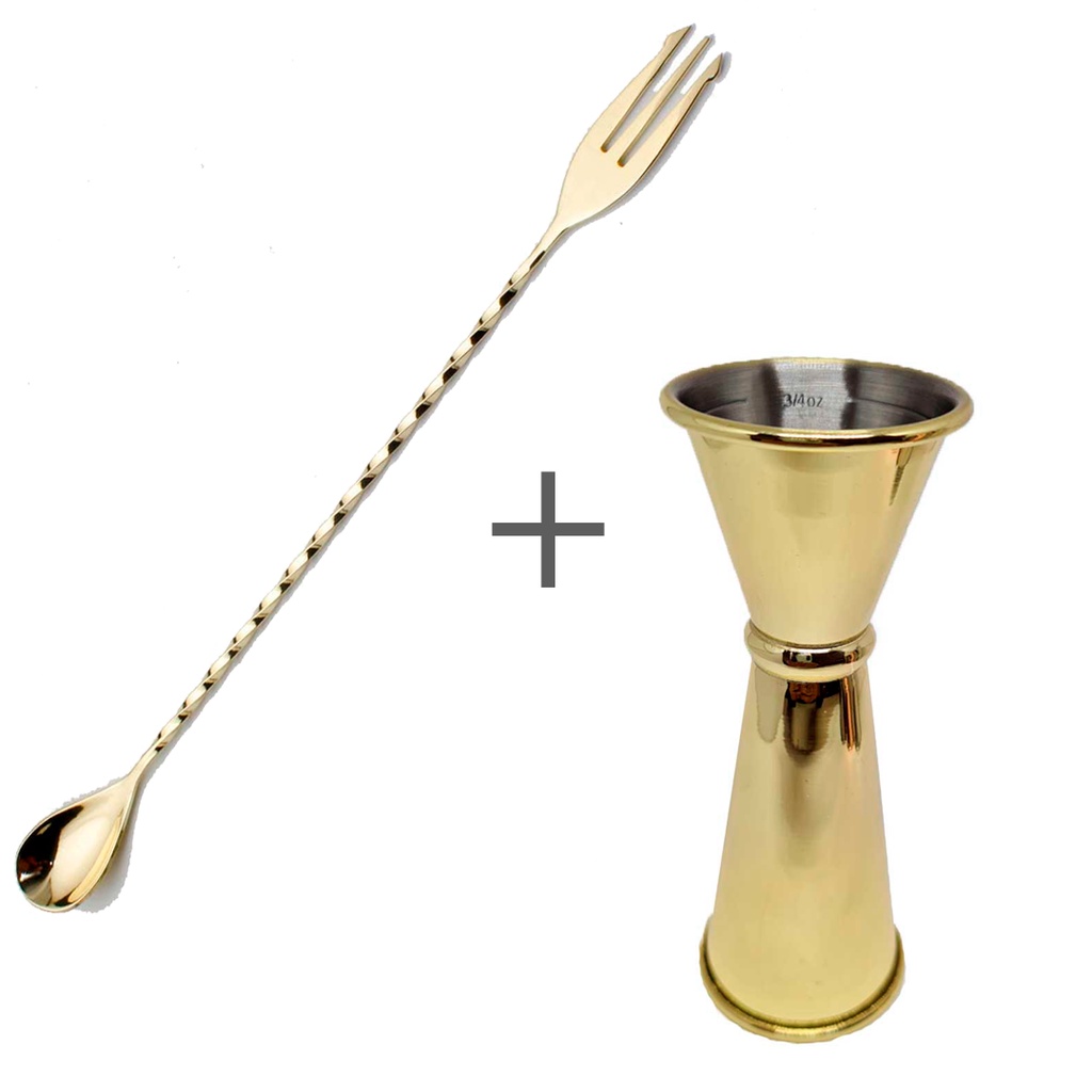 Kit Drink - Dosador 30/60ml + Colher Bailarina Dourado