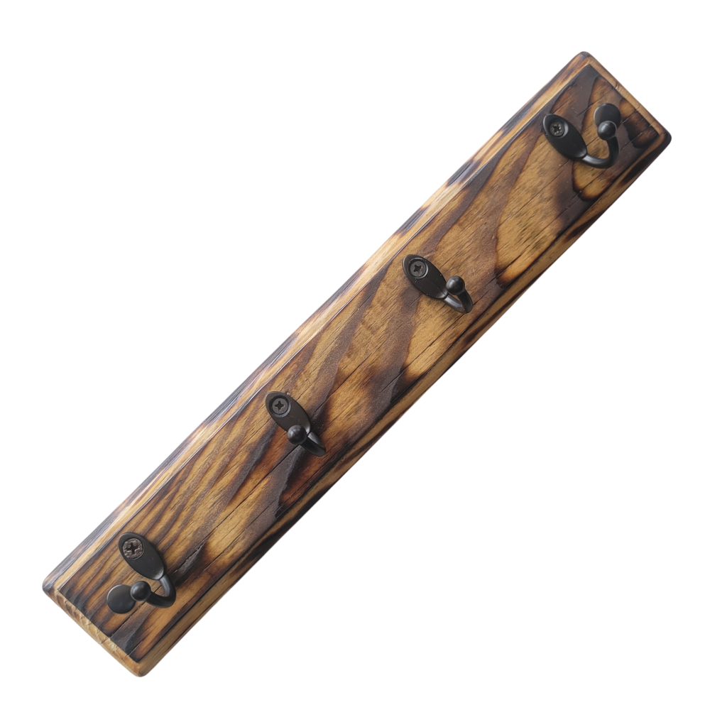 Suporte Gancho Cabideiro Pendurador de Parede Madeira Maciça Artesanal 4 Ganchos 30cm