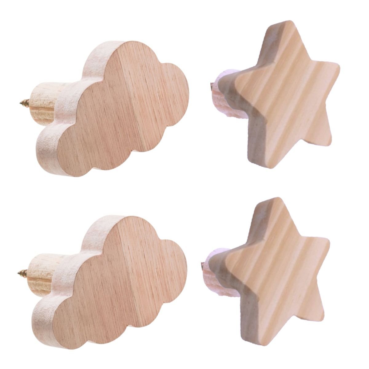 Kit Ganchos Pendurador de Madeira Nuvem Estrela de Parede Gancho Pendurar Cabideiro Infantil Diverti