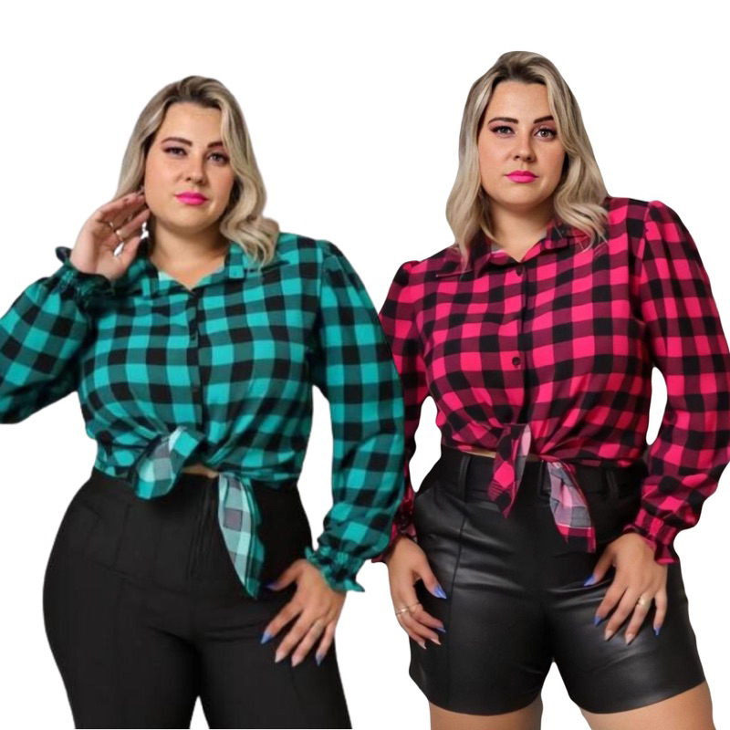 camisa feminina xadrez festa junina plus size arraiá festa são joao