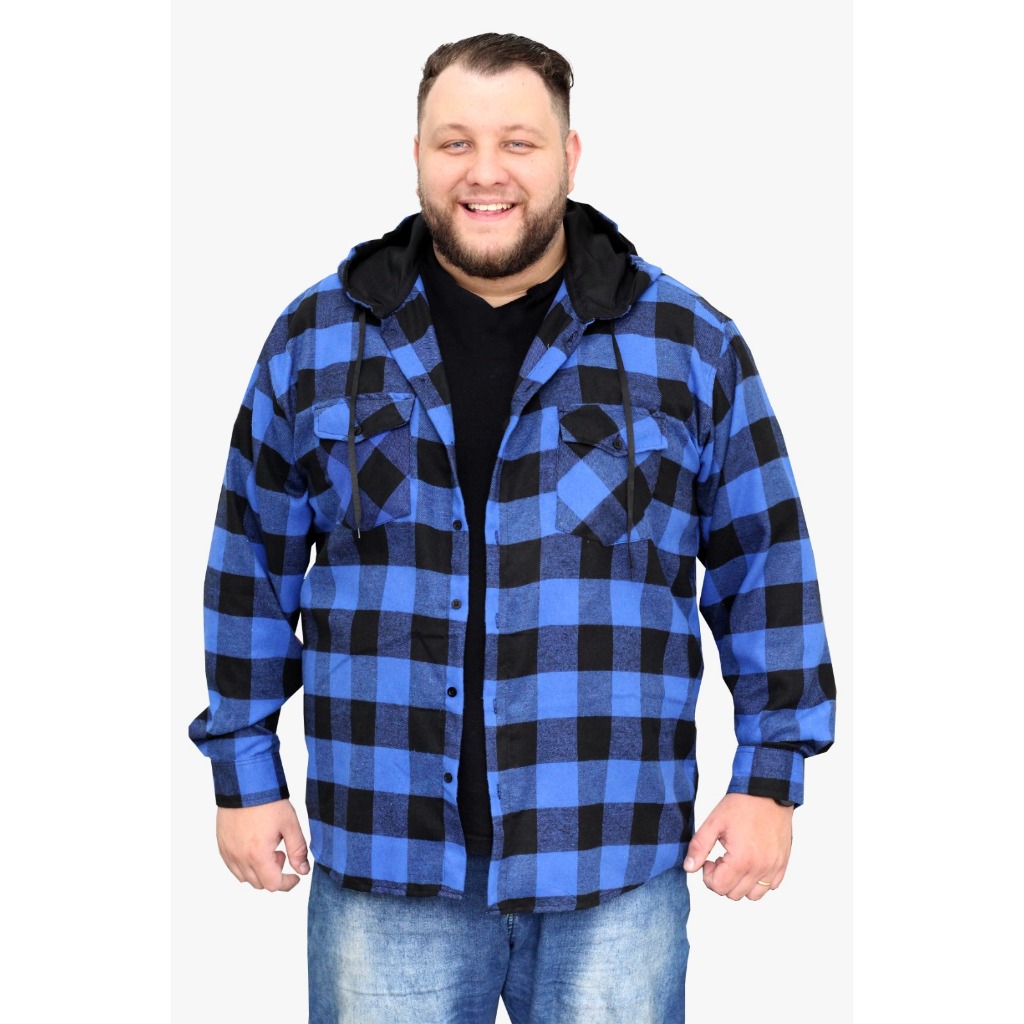 Camisa xadrez flanelada masculina adulto capuz Plus size tamanho extra Grande acima do GG .