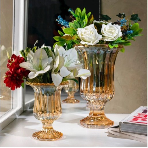 Vaso De Vidro Renaissance Ambar E Translucido - Vaso Decorativo De Luxo- LYOR