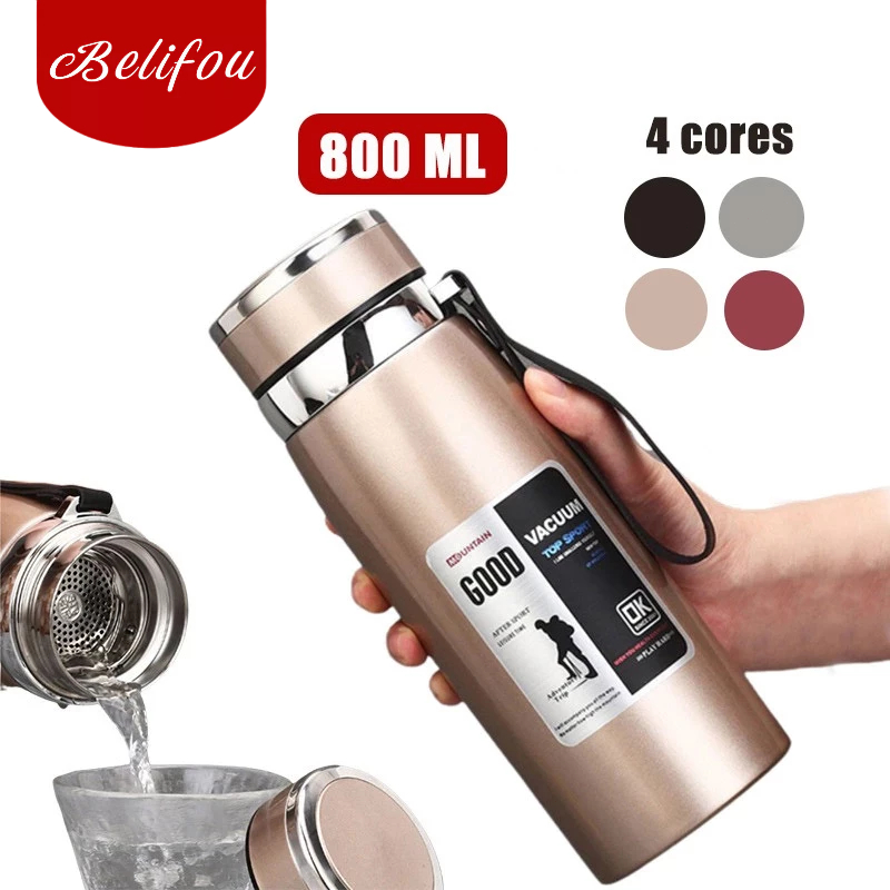 Belifou 800ML Garrafa Térmica De Aço Inoxidável Pote Térmico Portátil Com Filtro E Cordão Portátil