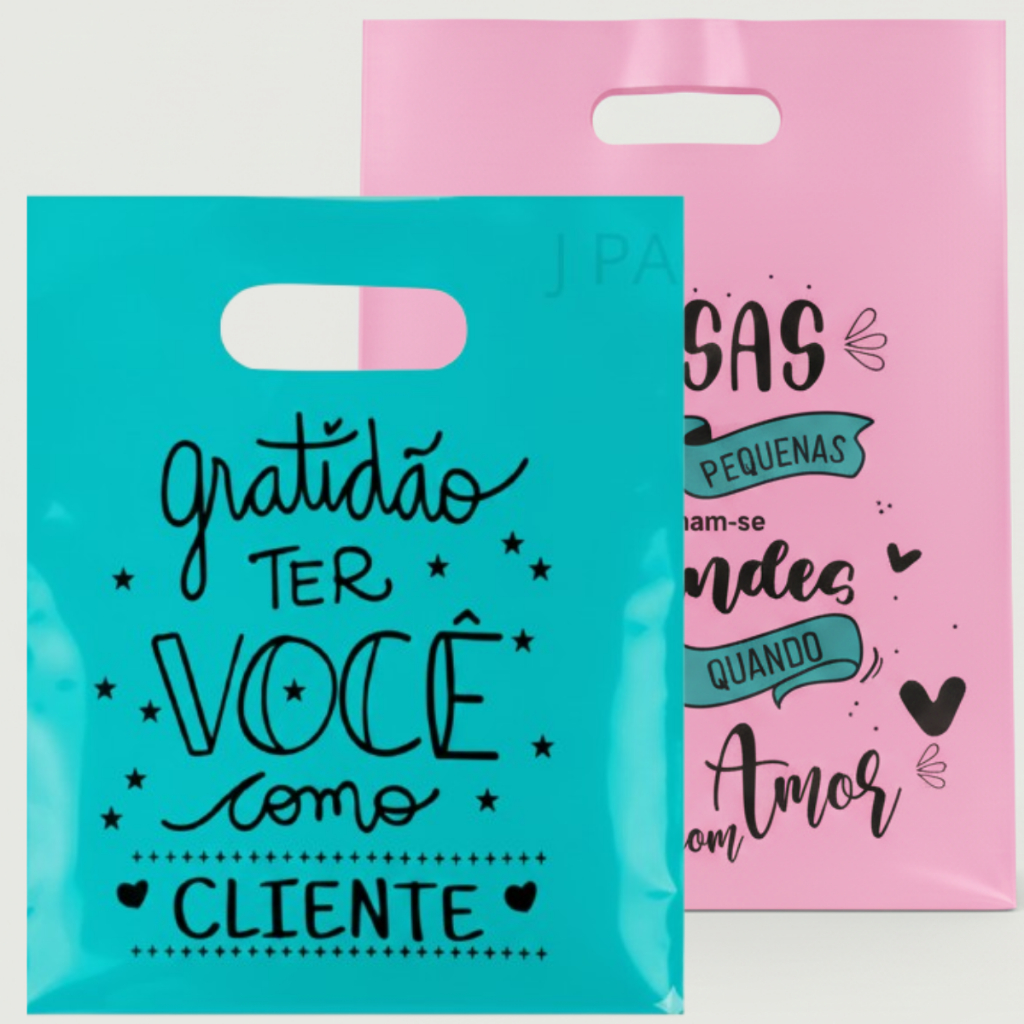 Sacola Plástica Personalizada para Loja com logo alça Vazada / Boca de Palhaço 50 unid