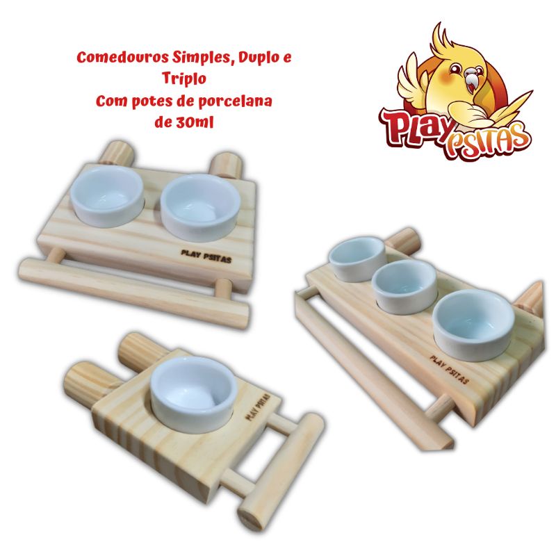 Comedouro Simples, Duplo e Triplo, com potes de porcelana de 30ml. Ideal para calopsitas, agapornis, aves em geral.