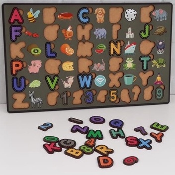 Alfabeto e Números em MDF Colorido - Brinquedo Pedagógico Infantil Aprenda Brincando