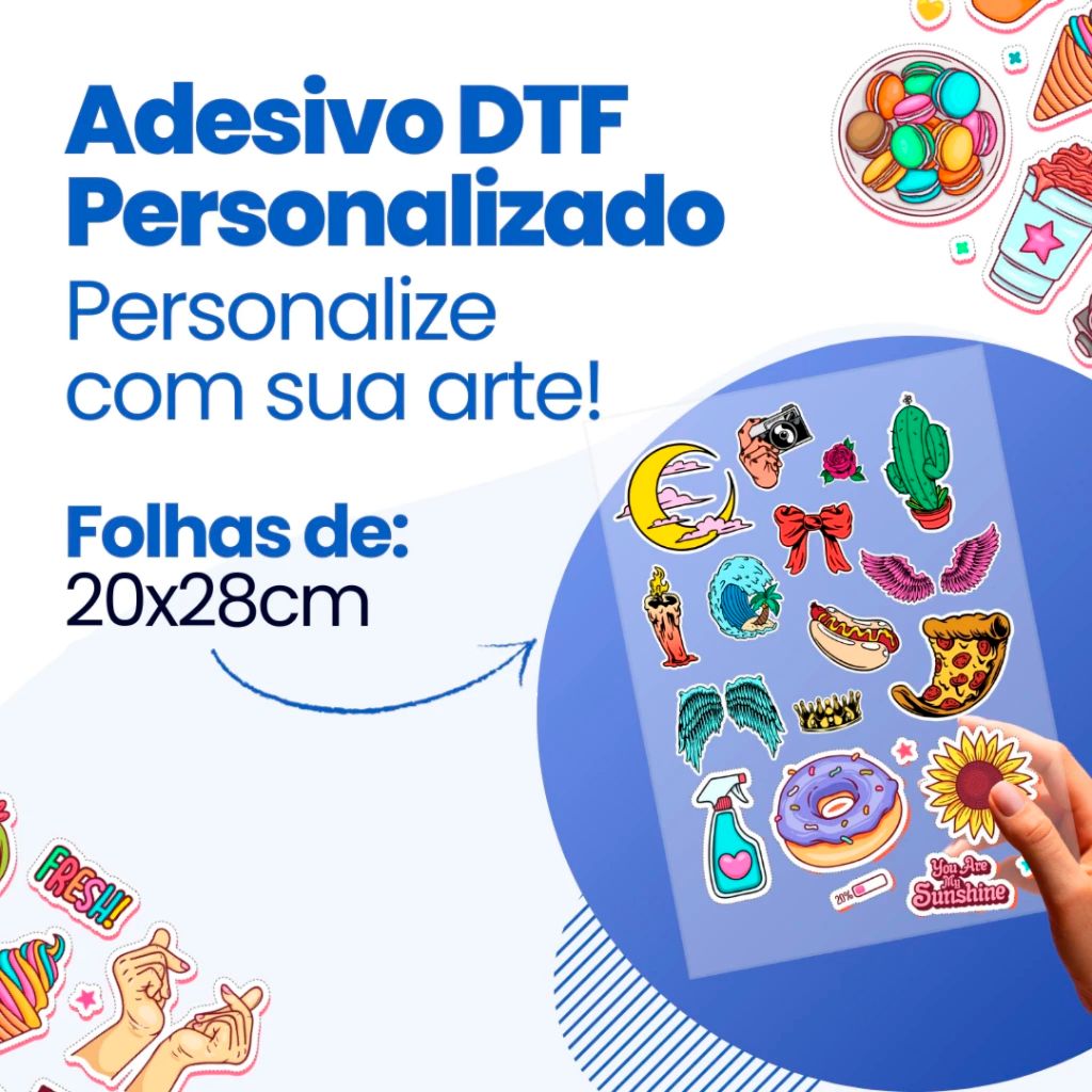 Adesivo DTF UV Personalizado | Folha 20x28cm | Adesivo Qualidade Premium | Envio Rápido