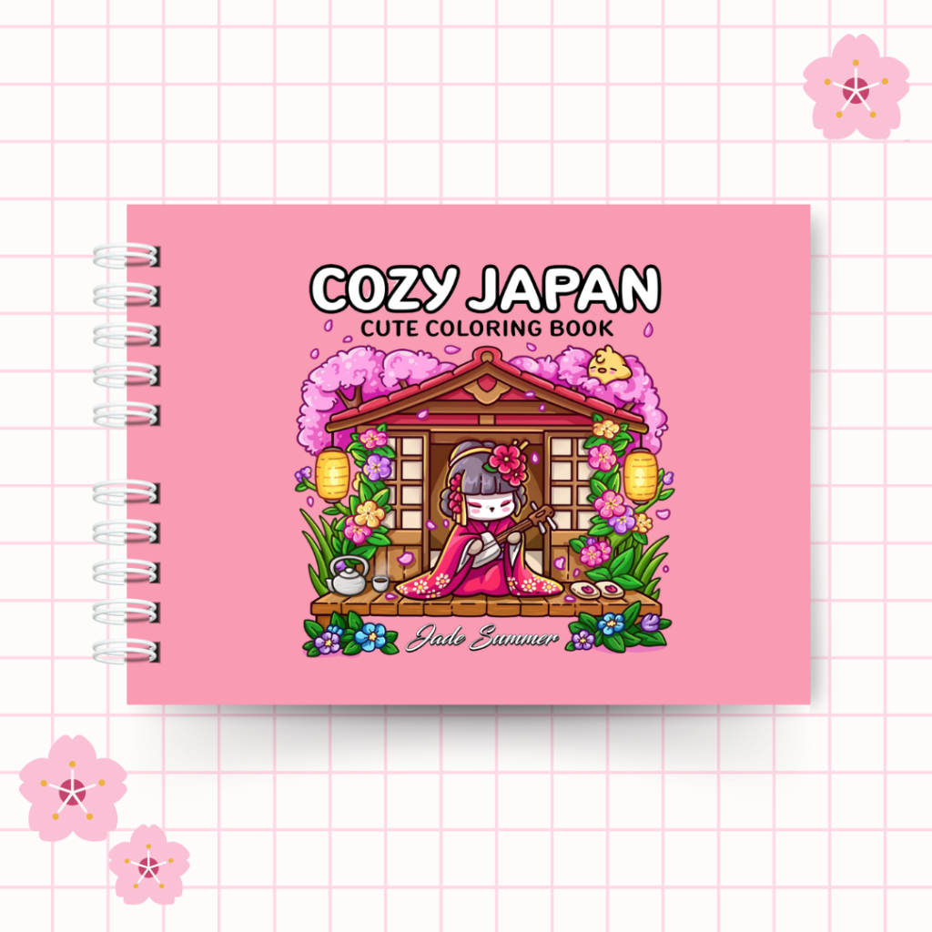 Livro de Colorir "Cozy Japan" Capa Dura Encadernado A5 Folhas Grossas 180g Laminação Holográfica